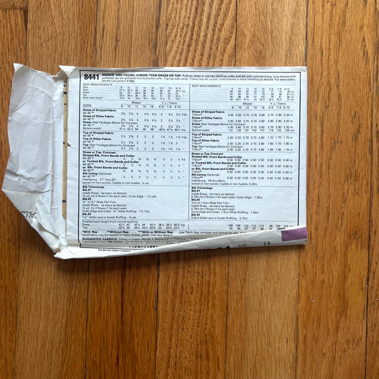 mccall's 8441 bib top & dress pattern