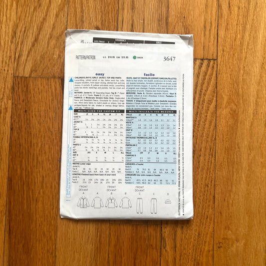 butterick 3647 children's sweatsuit pattern