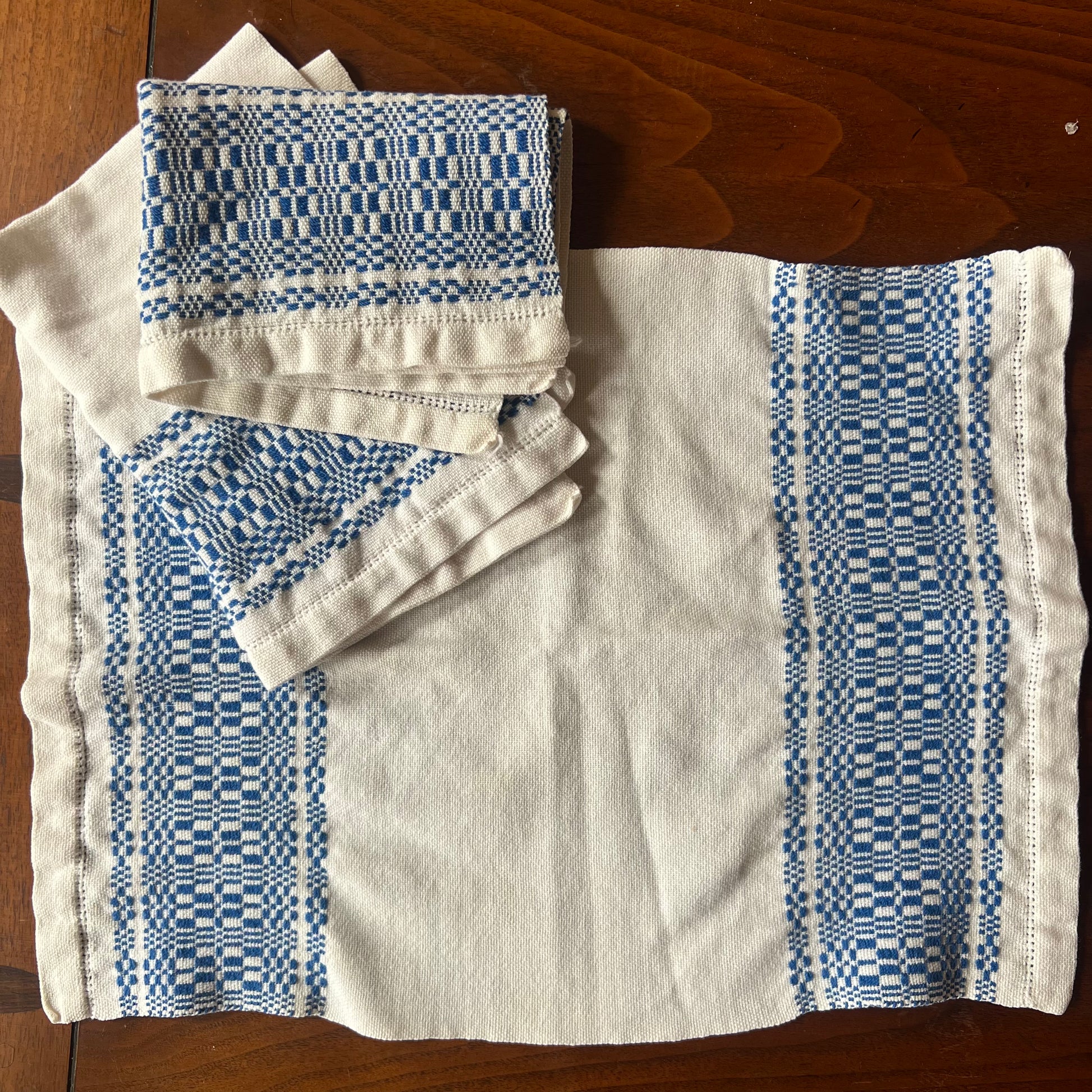 set of 3 cotton placemats with wonky cobalt checker print along the sides.