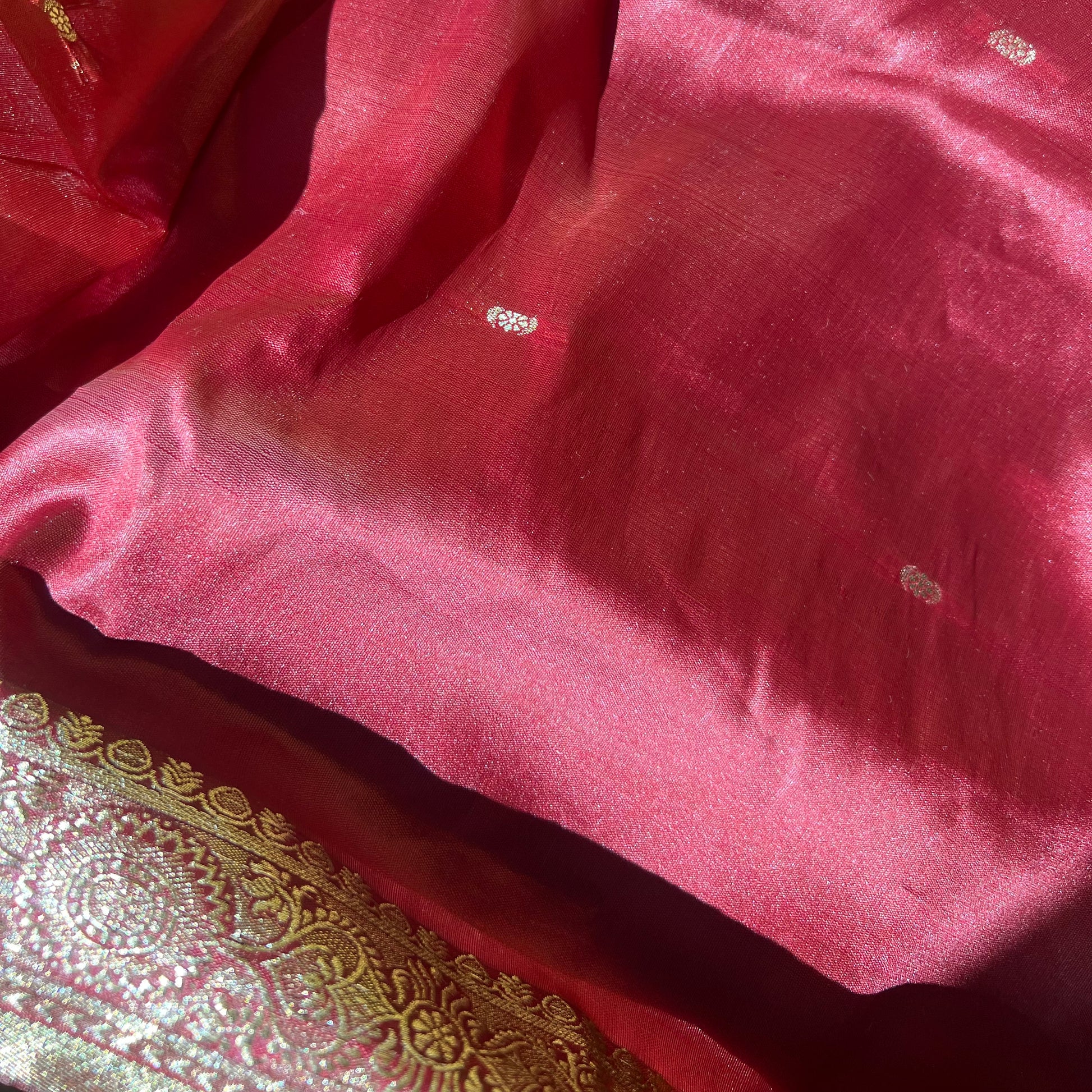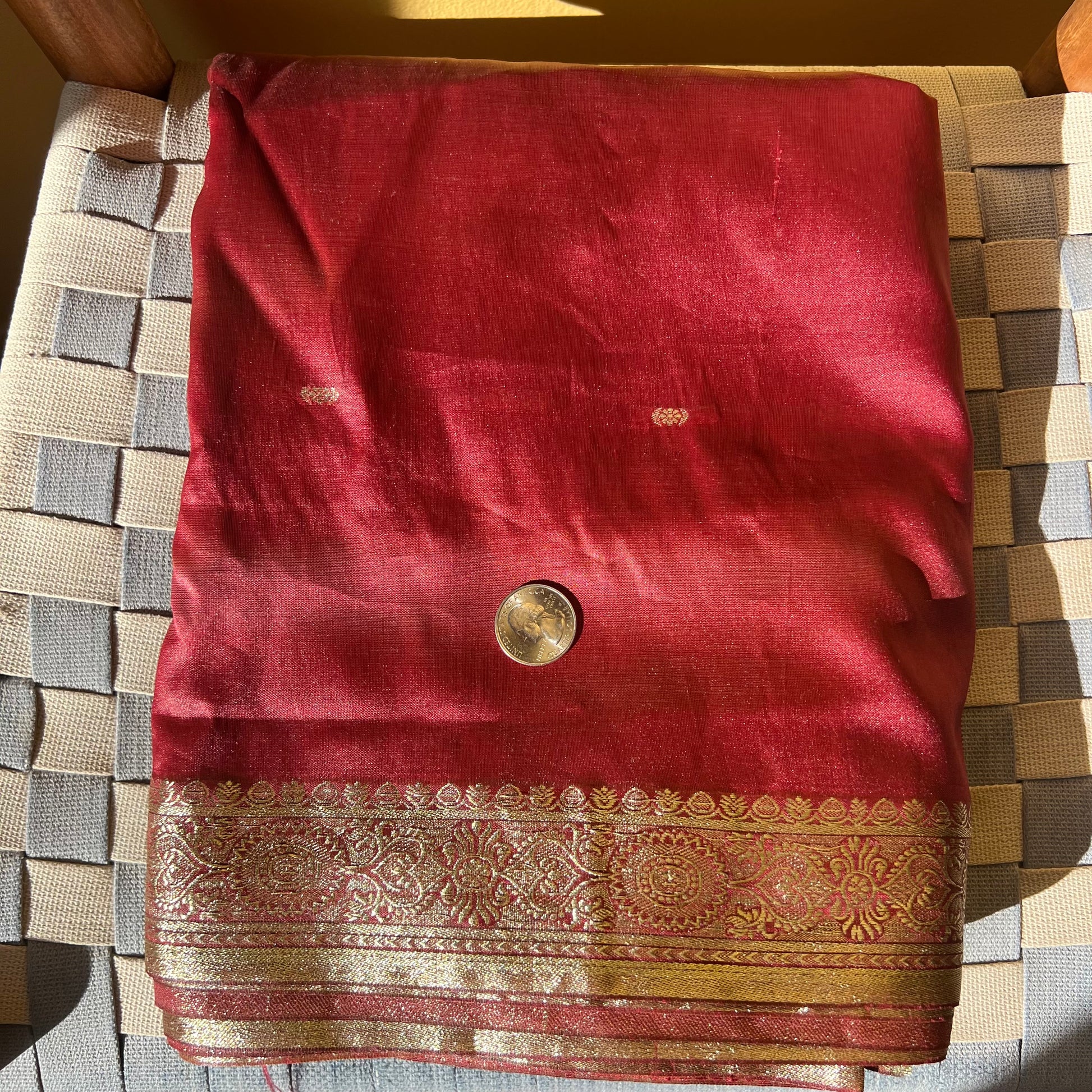 red and gold embroidered satin fabric (sold by the yard; 4 yards)