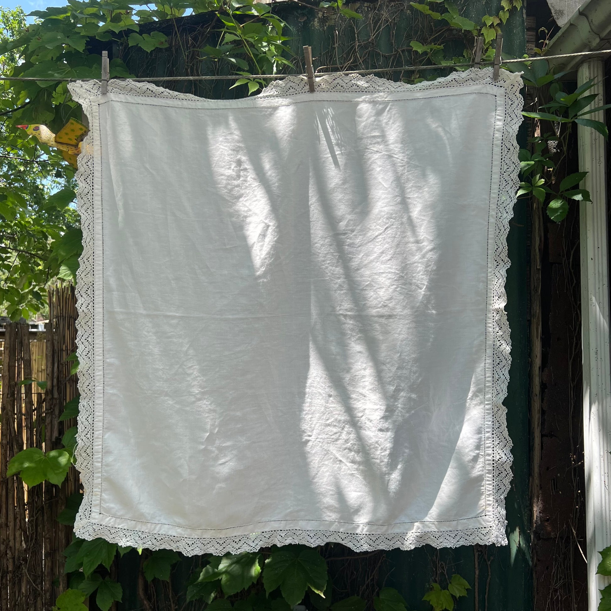 Vintage Crocheted Edge Linen Tablecloth